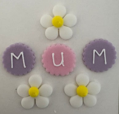 Each pack includes 3x Daisy sugar toppers and 3x 'MUM' initials. A simple decorating solution to add a professional finish to celebration cakes. Perfect for Mother's day baking.