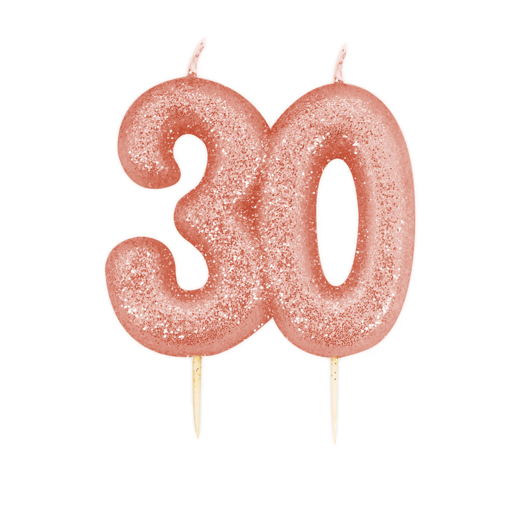 Make a wish on this gorgeous number 30 rose gold glitter candle! The contemporary font and rose gold glitter finish create an eye-catching custom cake topper.